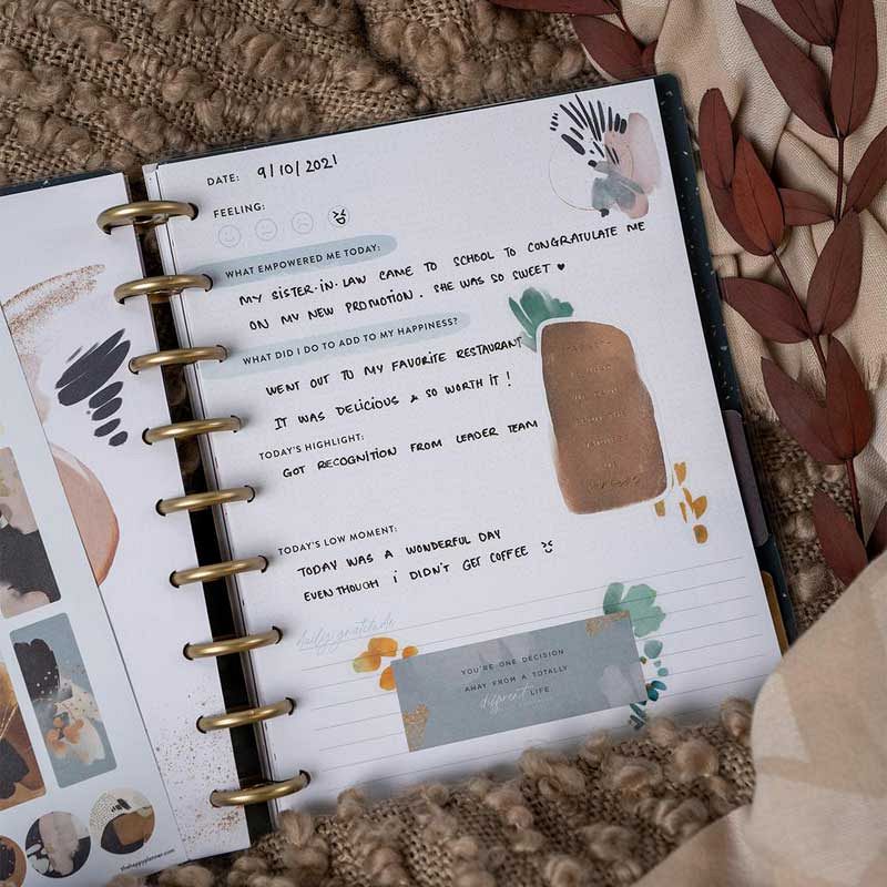 Daily pages let you track your moods, reflect and practice gratitude.