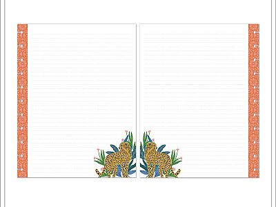 Dotted lined pages for writing, planning, and goal setting. Features cheetah graphics and designs at the margins.