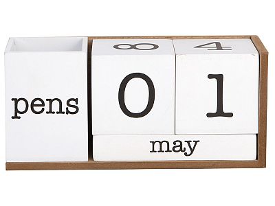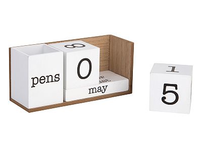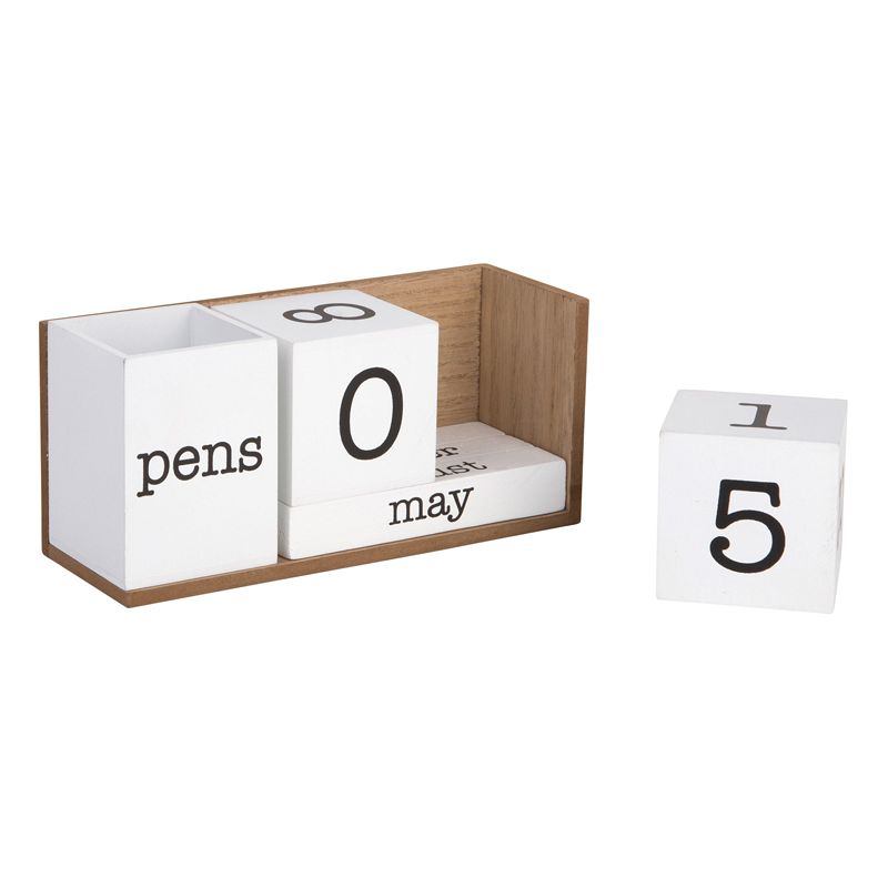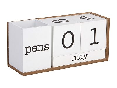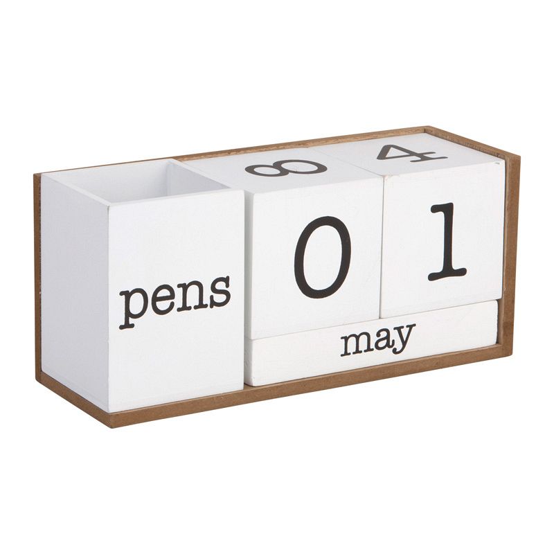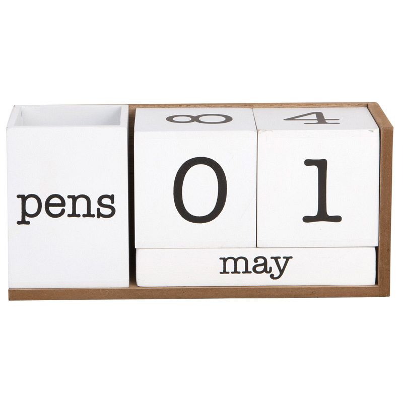 7.8" White Wooden Perpetual Calendar with Pencil Holder