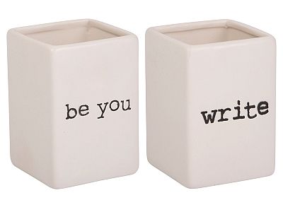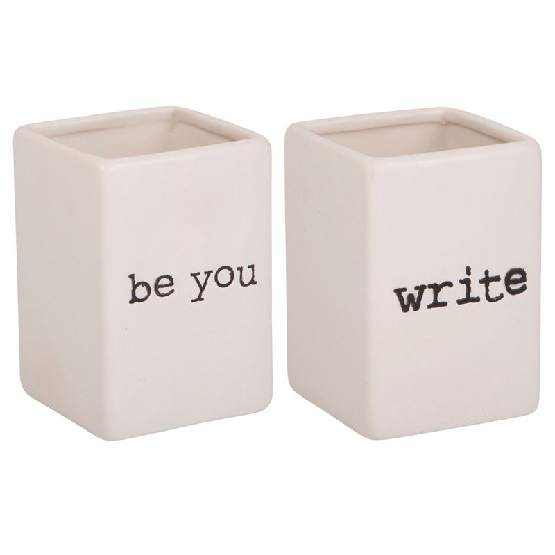Be You / Write 2Piece White Ceramic Pen Holder Set