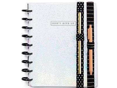 The handiest accessory you never knew you needed for your planner. Never forget or lose your pen again with the Black and Gold Elastic Band Pen Holders. Slip the stretchy band onto your Classic size Happy Planner, notebook, or journal. Gold lurex accents at the stripes and polka dot patterns with secure pen loops.