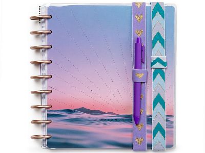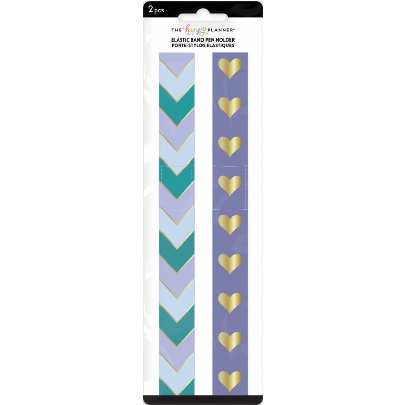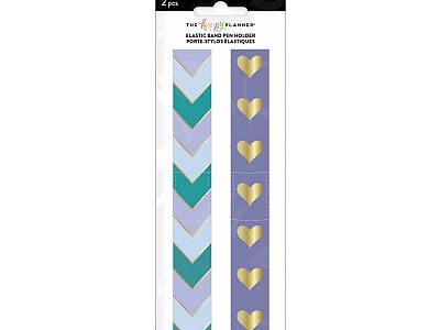 The handiest accessory you never knew you needed for your planner. Never forget or lose your pen again with the Cool Vibes Elastic Band Pen Holders. Slip the stretchy band onto your Classic size Happy Planner, notebook, or journal. Gold lurex accents at the chevron stripes and heart pattern with secure pen loops.