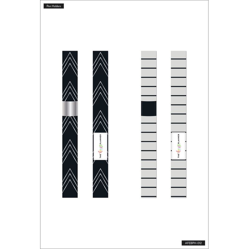 Never forget or lose your pen again with these elastic pen holders. Slip the stretchy band onto your Classic size Happy Planner, notebook, or journal. Silver chevron patterns and stripe prints with secure pen loops.