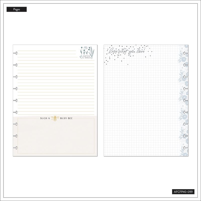 Add some coziness to your everyday planning routine! This filler paper fits into Classic size Happy Planners, notebooks, and journals. Add these pages and use them to make lists, write notes, or journal. It includes 40 lined pages with a blank section at the bottom for notes. The back features grided paper with the message "live what you love" at the top.