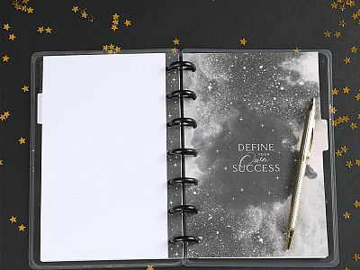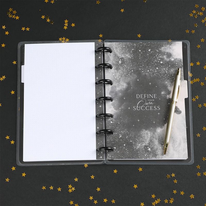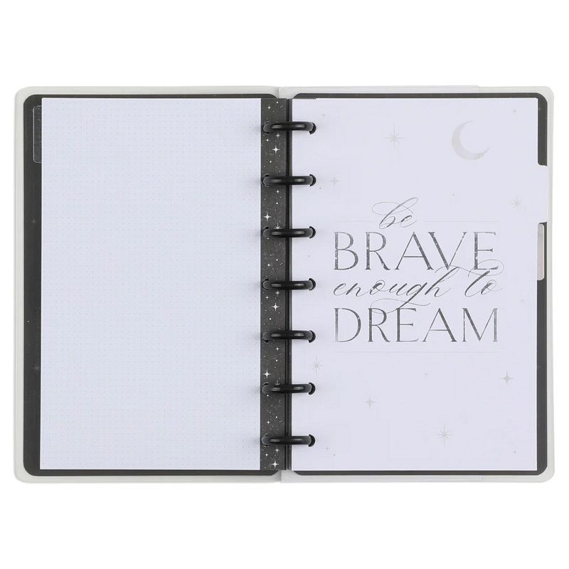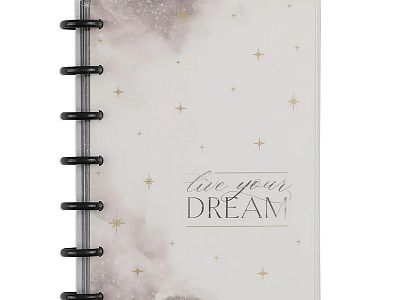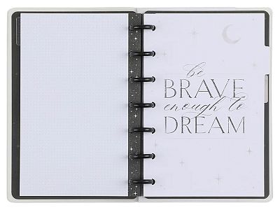 Live your dream. Document and keep track of all your daily to-dos in his handy notebook. This Classic size dot grid notebook features designs inspired by the night sky and motivational quotes.