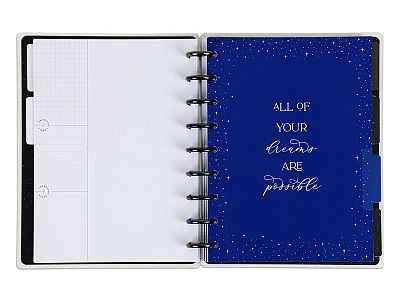 Get lost in space with the 12 included dividers. The interstellar colors selection of blues, purples, and oranges is out of this world, and motivating messages remind you to look up and look ahead. Label them with the included monthly stickers, some of the best planner accessories. Arrange as you see fit.