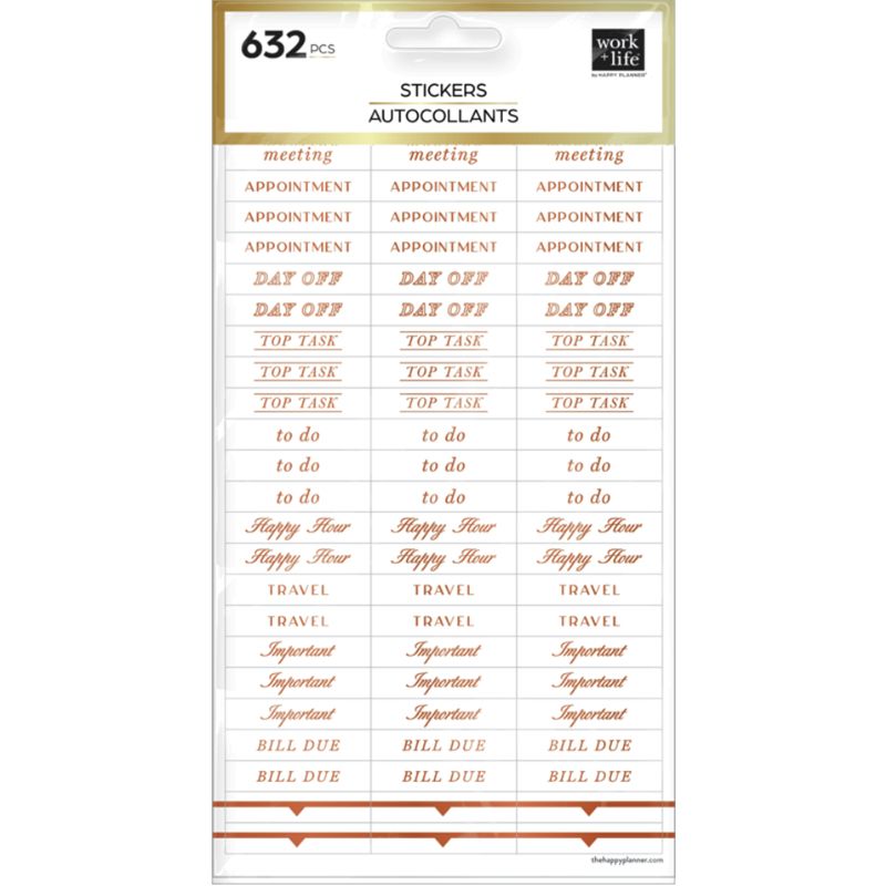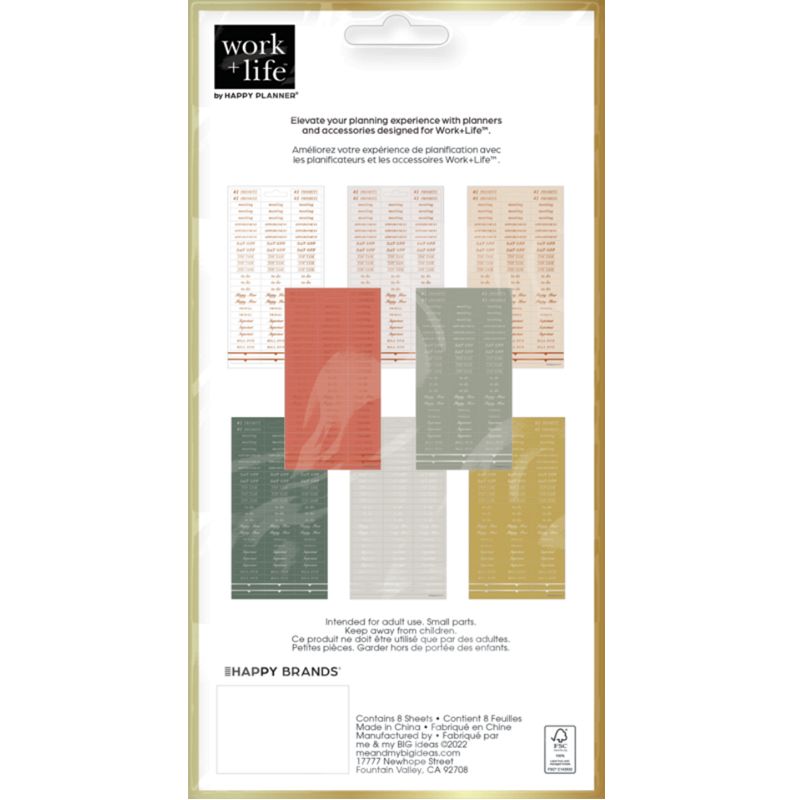 Work + Life: An elevated collection to optimize your productivity. The minimalist designs were created with the professional in mind. Get organized at the office, take notes during meetings, and feel confident in any work environment with these organizational sticker packs. These planners and accessories work across all our disc bound Happy Planner items. Get organized in the office with these fun earth tone sticker sheets. This set comes with 8 sheets and 632 stickers. Add these icons to your Happy Planner monthly calendars and weekly spreads to boost your productivity.