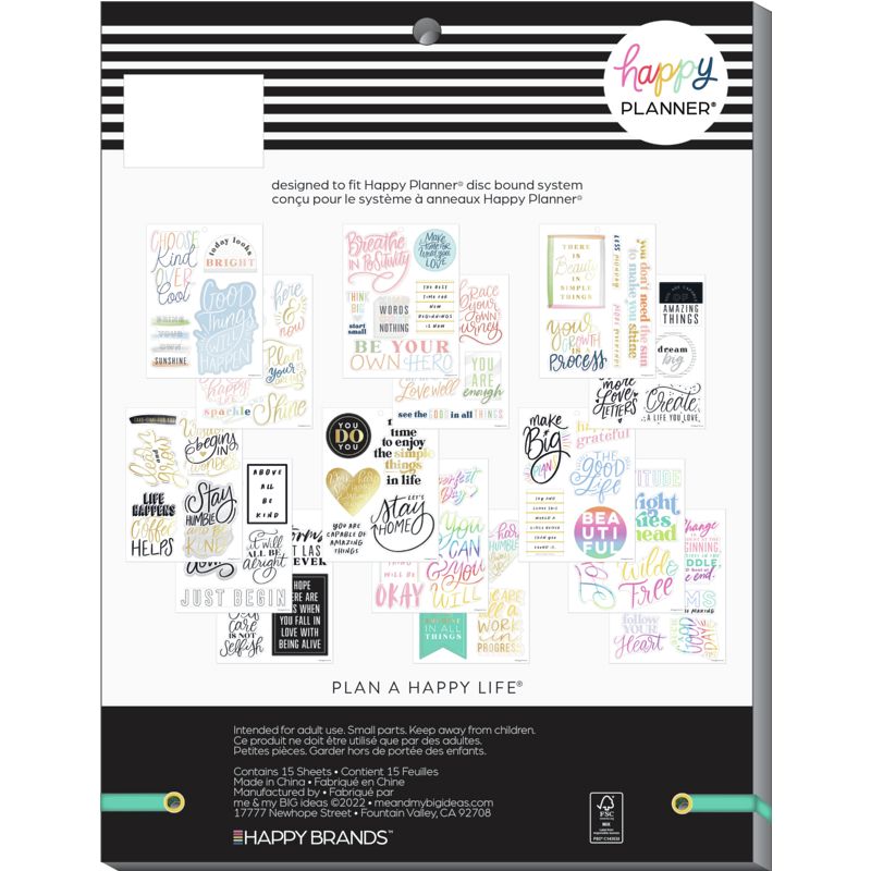 Features inspirational quotes in neutrals and colorful designs with gold foil accents. Add these icon stickers to your Big Happy Planner, scrapbooks, and crafts