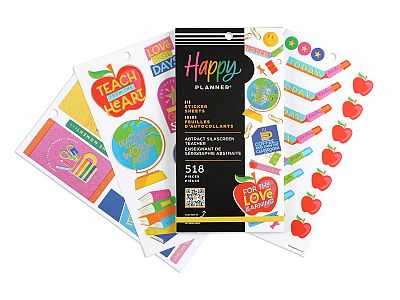 Teachers make the world a better place. This teacher-themed sticker set will help you stay prepared. From inspiring quotes and classroom-inspired designs to help you get through the day to colorful boxes and friendly reminders that'll keep you on track, there's a variety of ways to use these teacher accessories and keep your Happy Planner and notebook looking like a class act.