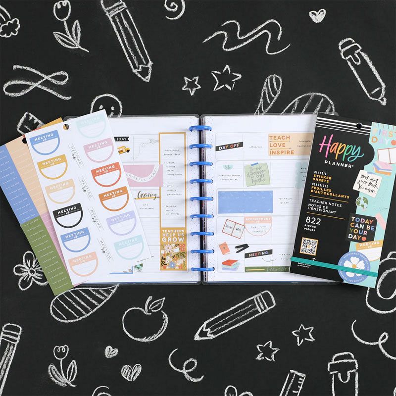 Today can be your day. This teacher-themed sticker set will help you stay prepared. From inspiring quotes and classroom-inspired designs to help you get through the day to memo boxes and friendly reminders that'll keep you on track, there's a variety of ways to use these teacher accessories to keep your Happy Planner and notebook looking like a class act.