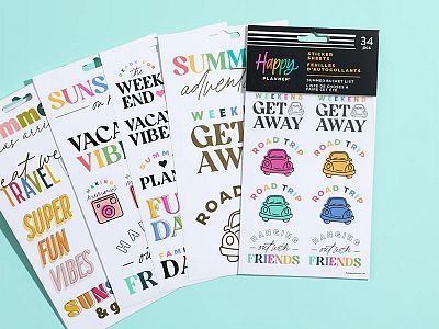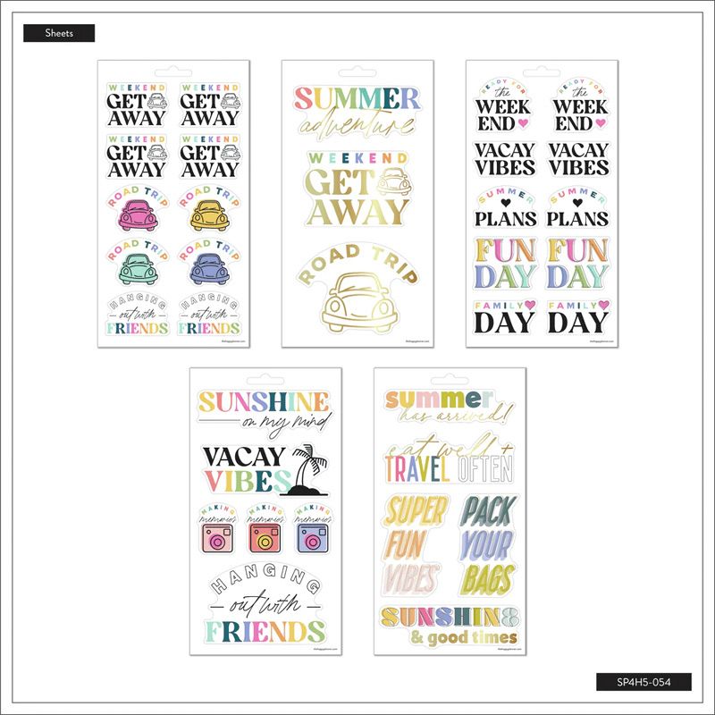 Sunshine on your mind. These sticker sheets feature summer themed reminders, bright colors, and vacay vibes. Add these to your scrapbooks, Memory Keeping Journals, or Happy Planner spreads love the season you're in.