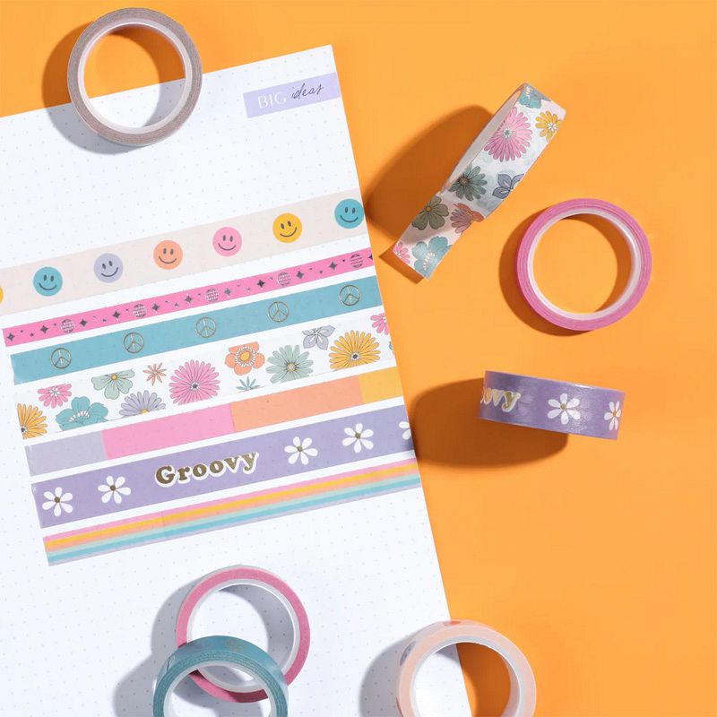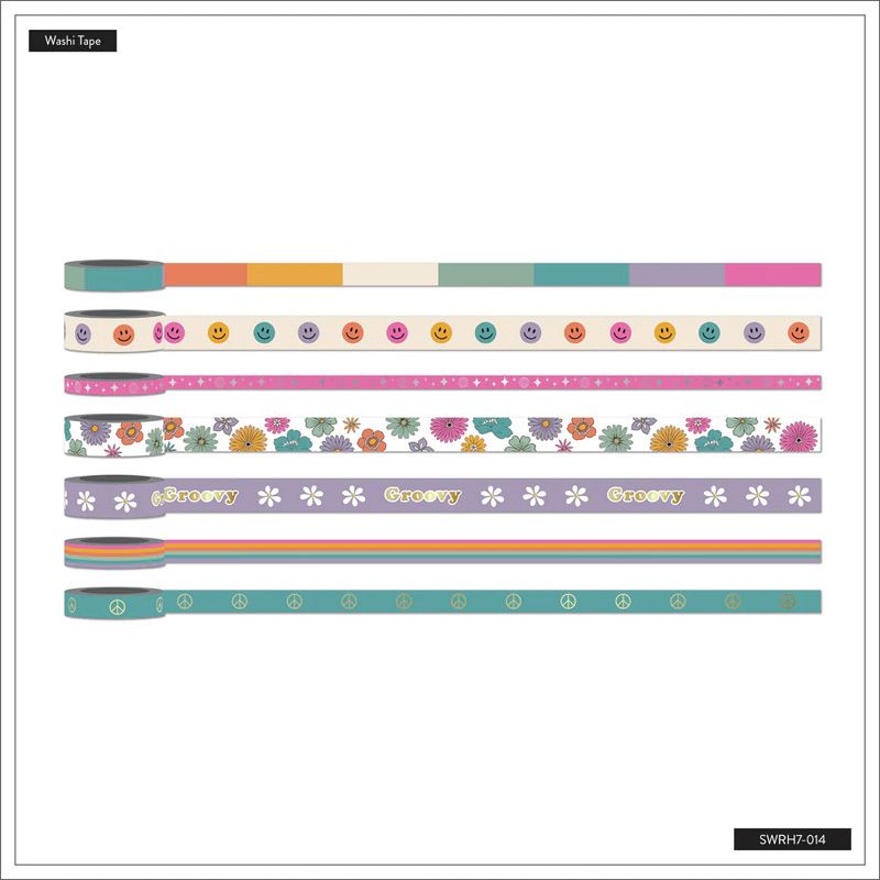 Washi tape is perfect to decorate your Happy Planner or any other project you might be working on. Add these groovy strips in our Decades 70s collection to your weekly spread to help make planning that much more fun with this washi tape set!