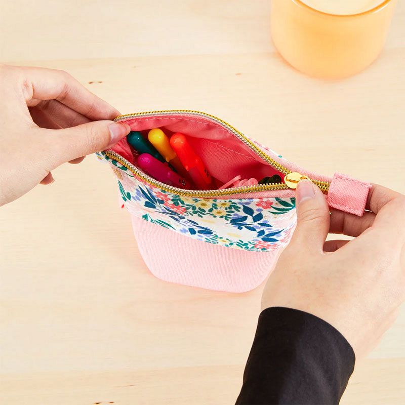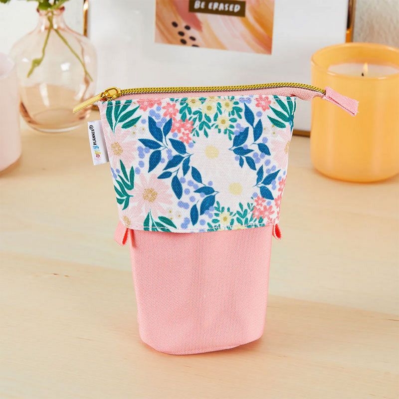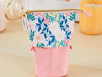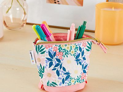 New season, new pouch! Whether youâre on-the-go or stationed at your desk, this convertible zip pouch can carry all your writing utensils and convert itself to a standing-pencil holder. The main compartment features interior slip pockets, perfect for storing pens, pencils, and highlighters. This zip pen pouch features a colorful splash of floral prints on the top half and solid pink tone at the bottom.To convert to a standing-pencil holder, set pouch upright, open zipper, and pull down both side tabs. Now all your writing utensils are within view and reach!