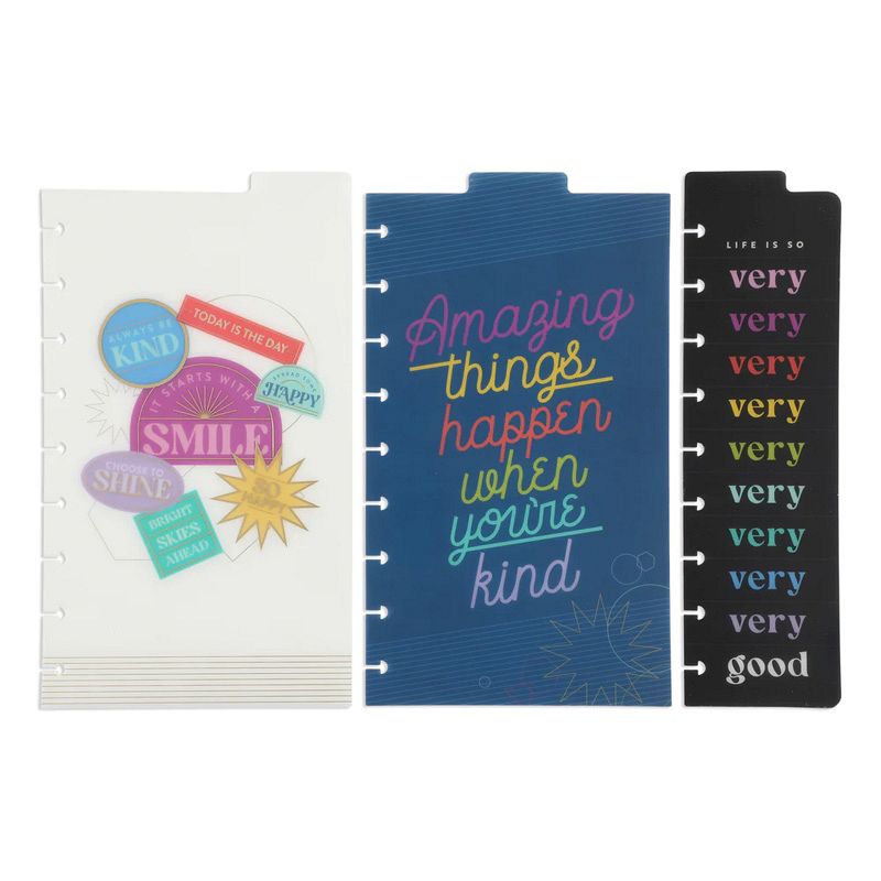Use dashboards to section off categories, notes, or spreads. These Spread Some Happy dashboards will add positivity and brightness to your Classic size Happy Planners. Keep your place and use these as a handy bookmark! These easily snap into Happy Planners, notebooks, or journals and can be moved around.