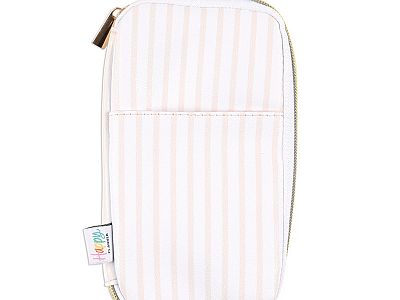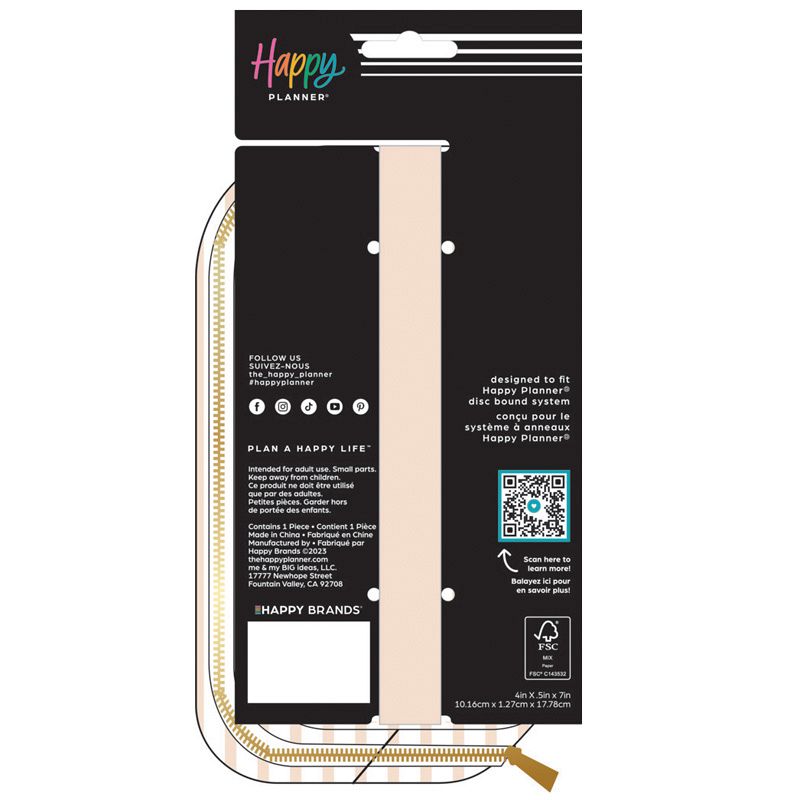 Keep all your planning necessities on hand. This faux leather pouch features a peach striped print with a contrasting band that wraps on your Happy Planner covers. The zip closure will keep your pens, sticky notes, and washi tape safe!