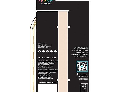Metallic gold zip detail with a Happy Planner label flag