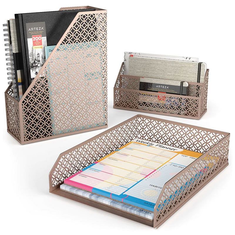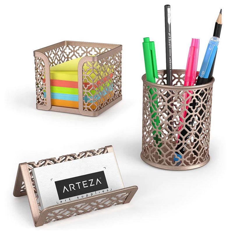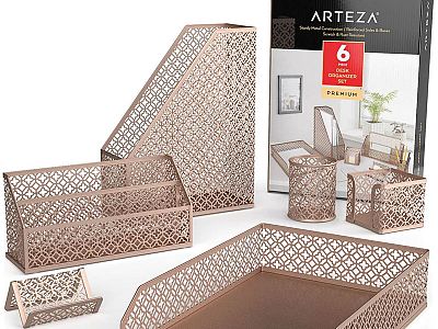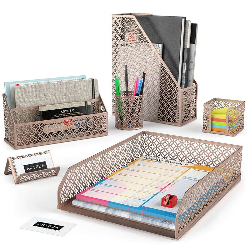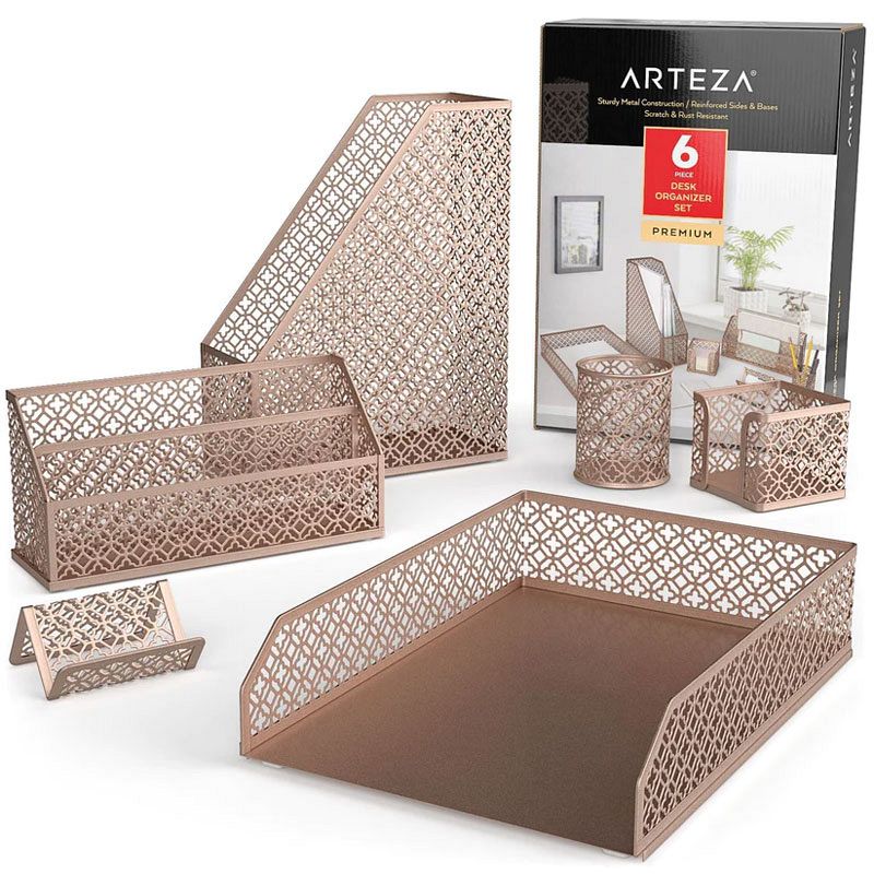 ARTEZA 6Piece Desk Organizer Office Set Trendy Rose Gold Mesh