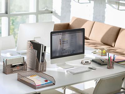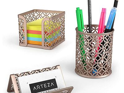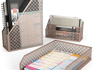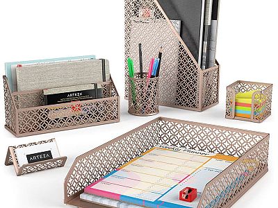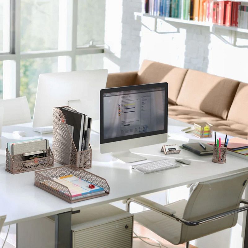 Keep your work area personalized and inspiring with an office organizer set that reflects your personal style. Utilize all 6 components of these rose gold desk accessories in one space, or spread them throughout your home or office