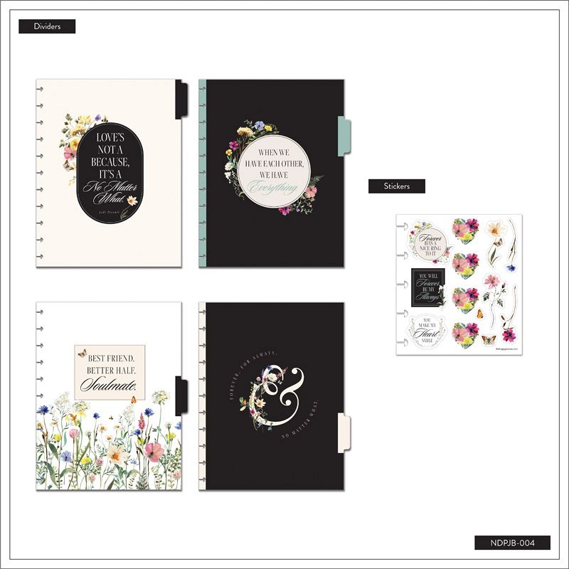 80 pre printed template pages with 20 different designs and unlabeled dividers to categorize your pages. It includes 1 sticker sheet to get you started and 4 dividers to categorize as you need.