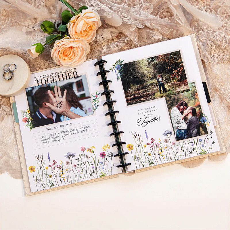 Simplify your scrapbooking with our Memory Keeping photo journals. The pages includes templates for photo layouts and lined sections for adding memories and captions. This journal is decorated with delicate creams, contrasting floral designs, and touches of romance. Have a unique experience commemorating your most special memories of your big day for years to come. This is where your adventure begins.