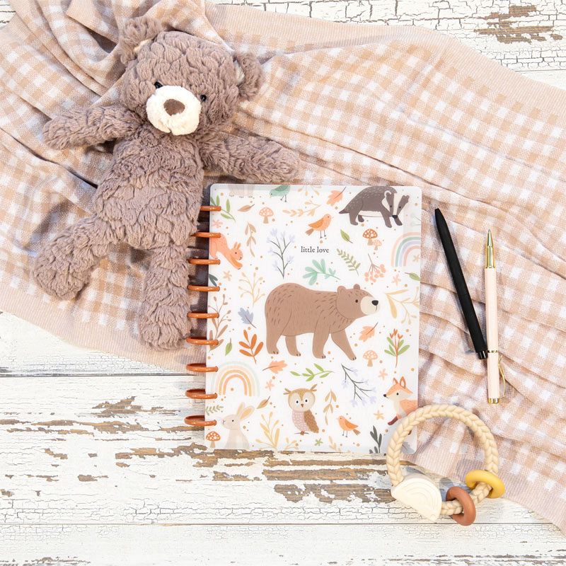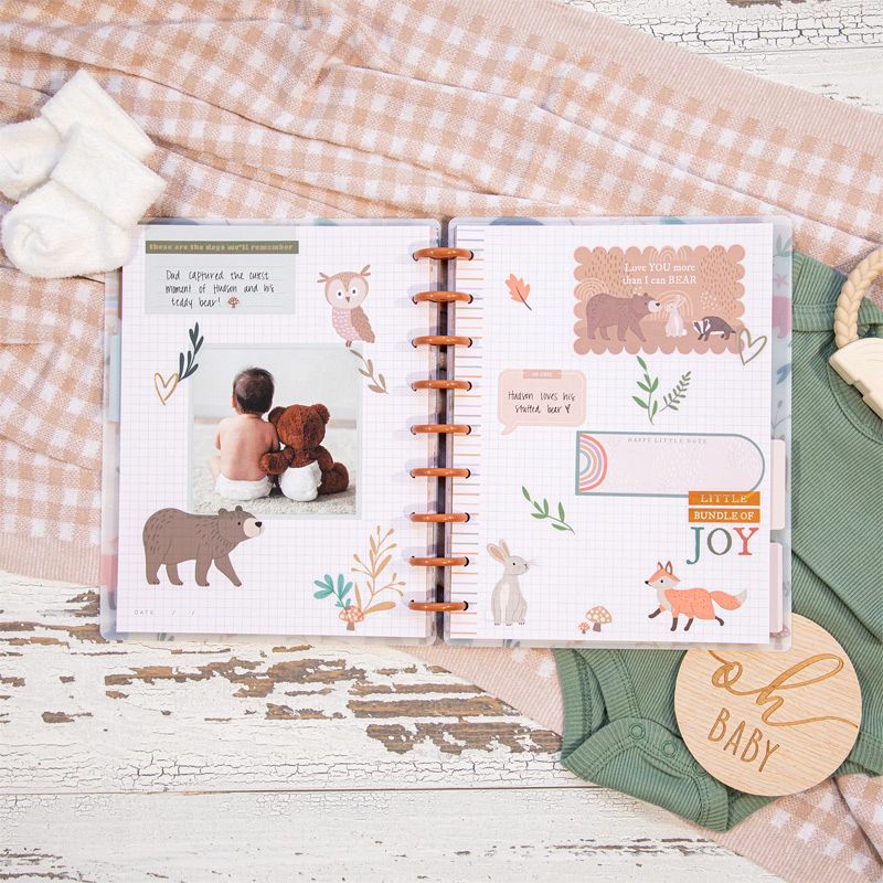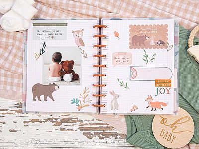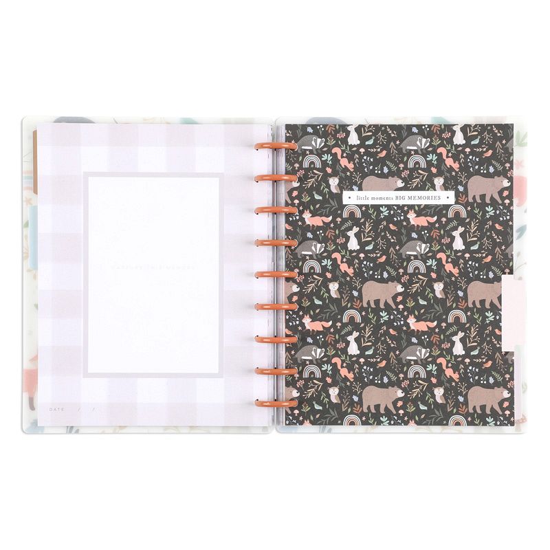 This Memory Keeping photo journal is our take on the traditional scrapbook. Follow the guidelines for different photo sizes and use the additional space to write down all your precious memories. This journal is decorated with adorable animals and forest imagery reminiscent of a childhood nursery. It's geared towards capturing your earliest memories with your little one to savor for years to come.