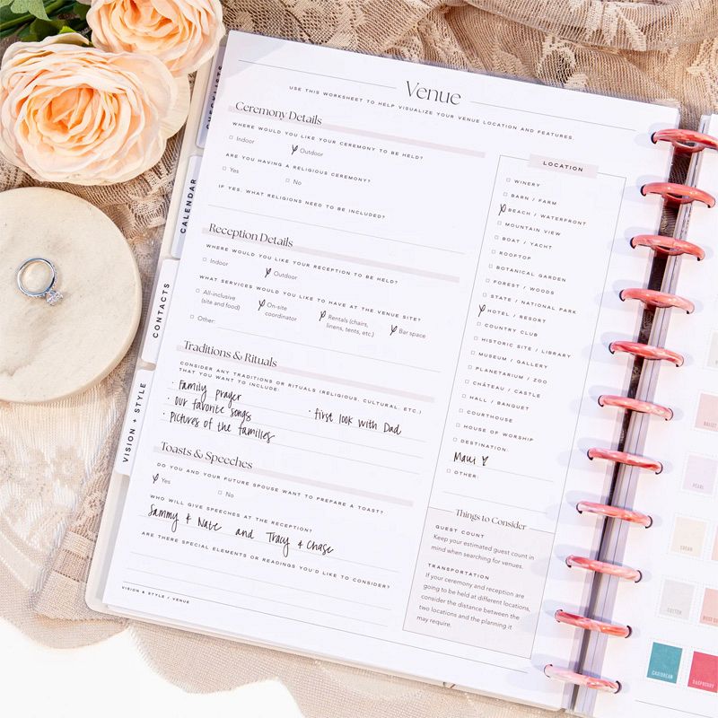 Forever has a nice ring to it. We're honored to lead you through the exciting journey of planning your big day with this undated Big size Happy Planner! Today is just the beginning of all the fun. We know the wedding-planning process is detailed and time-consuming so we're here to walk with you through it and make sure you take care of yourself during the process. This planner is designed with soft colors, romantic floral graphics, and quotes that remind you what it's like to fall in love. Make walking down the aisle a less stressful experience with a guide that offers detailed breakdowns every step of the way and allows you swoon worthy creative expression.