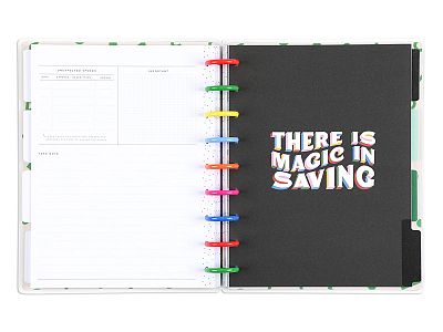 This Big size Happy Planner is the perfect guide for a beginner trying to monitor spending or the advanced saver who loves organization. This layout was specifically designed to help you save with weekly expense charts, sections for spending reflection and motivation. It has space to set and reflect on financial goals while monitoring unexpected expenses. Monthly calendar layouts with 12 dividers featuring whimsical prints, metallic foil accents, and money motivated quotes to help you achieve your goals. Make planning your finances an exercise in creativity with this stand out planner.
