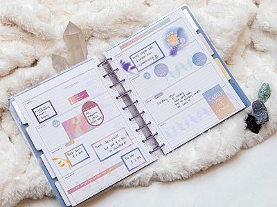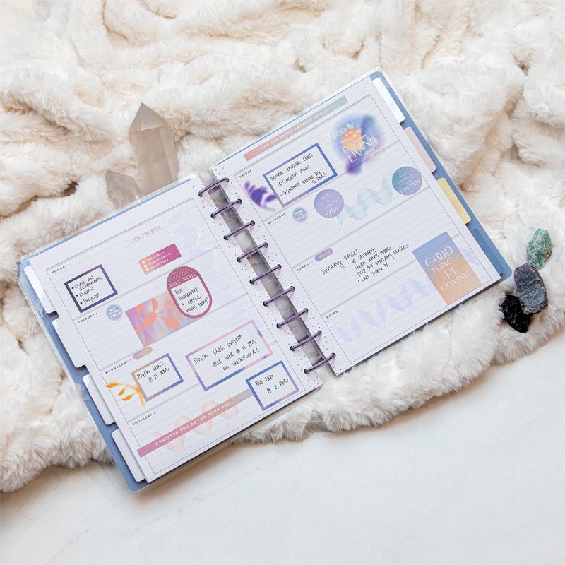 This undated 12 month planner allows you to pick up at any point in the year or if you feel like starting over with a new planner all together. A monthly sticker sheet is included.