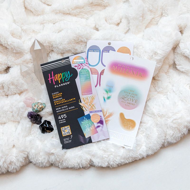 The Happy Planner New Aura Classic 30 Sheet Sticker Pack 495 Stickers BUY ME FOR 50% OFF with your cart order of $30+ before taxes. Use discount code HAPPYSTICKER25 **2 units left in stock**