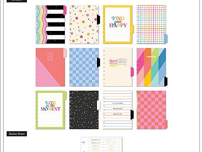 Plan or create and brainstorm with this Happy Brights Happy Planner. This dashboard layout contains 12 dividers with retro vibes and smiley faces with an overall positive feels. Plan calls or emails along with your next major social event with our unique disc bound planners.