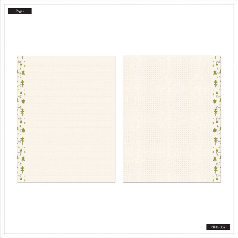 Document and keep track of all your daily to dos in this handy Happy Planner big notebook. This Big size Camp nostalgia dotted lined and grid dot notebook is perfect for summer planning. It features trees and postage stamps with designs reminiscent of a good old fashioned camping trip.