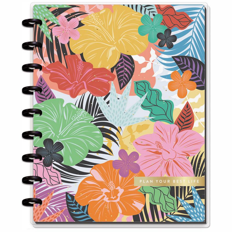 Focus on the bright side of life with our tropical theme notebook. Document and keep track of all your daily to dos in this handy Happy Planner classic dotted lined notebook. This Classic size notebook features palm fronds with pineapples and a fun tropical floral designs.