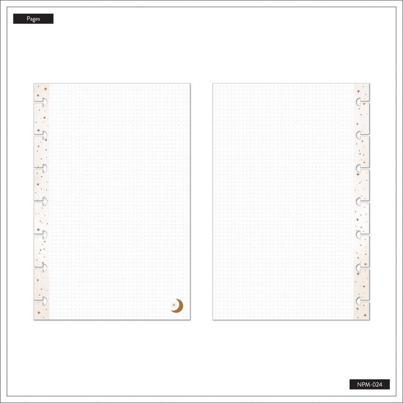 Write out all your busy plans and take notes or make a wellness journal and more with in this Mini notebook. This celestial themed notebook is designed with celestial artwork and dreamy feels. It comes with dot grid notebook pages and dividers for your categorization.