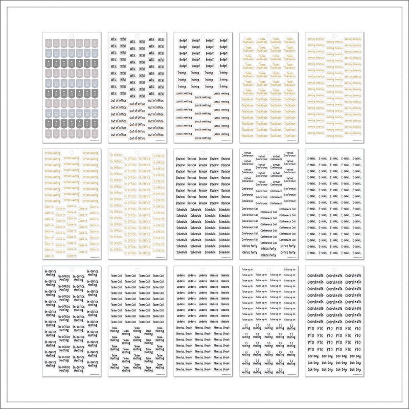 These work stickers offer a combination of reminders and tools for keeping your days at the office or working from home 100% organized.