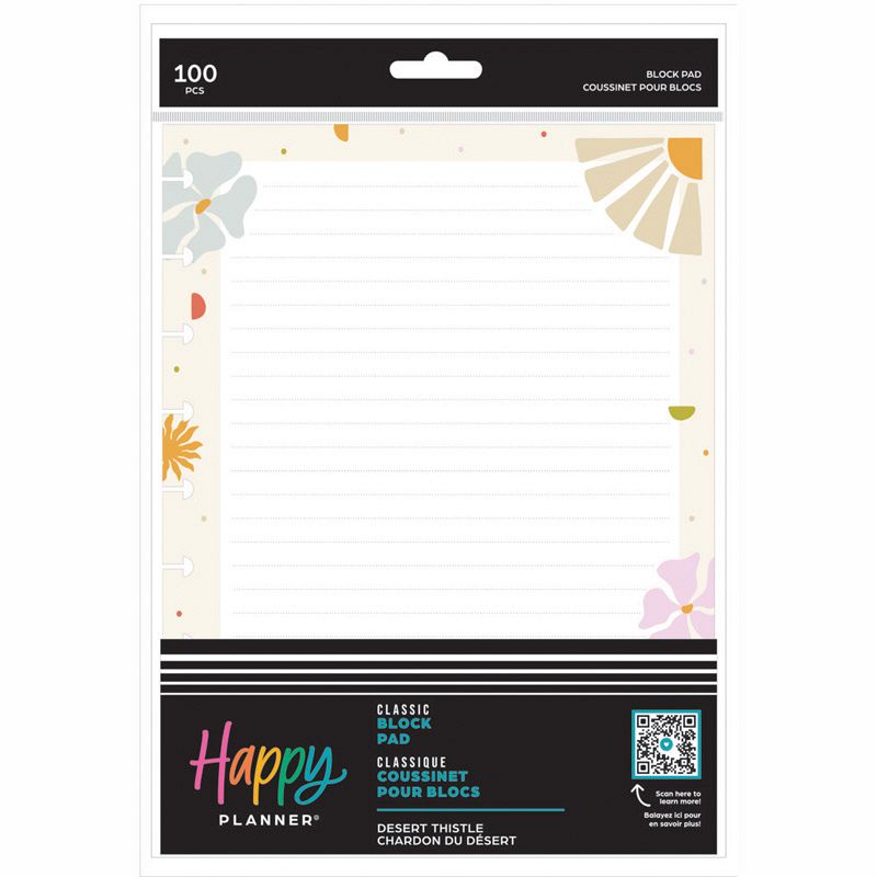 This Desert Thistle Classic size Happy Planner block paper pad features dotted lined paper to write down all your daily to dos and important notes. A perfect planner accessory to help draft plans and brainstorm or make lists. The block notepad design features abstract florals and muted tones.