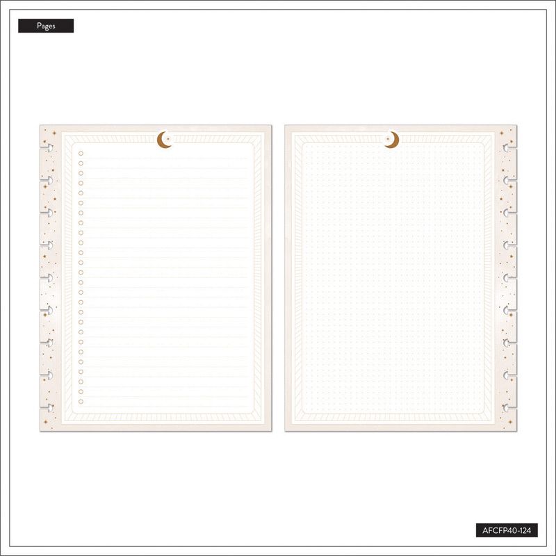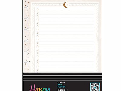 Add these Happy Planner filler paper pages to your Classic size planner and journal or notebook. Extend its utility while you boost your productivity with the best planner accessories. These double sided pages have checklist and dot grid pages for versatility and designs that incorporate imagery inspired by a starry night. Write notes or design your own habit trackers and get creative with all the uses of this high quality notebook paper.