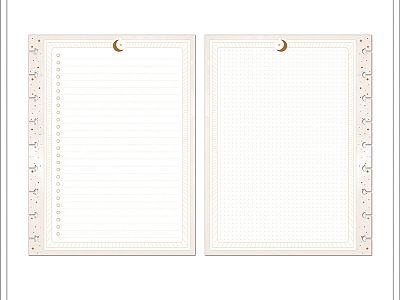40 double sided sheets with checklist front and dot grid back pages. It has moons with stars and celestial imagery.