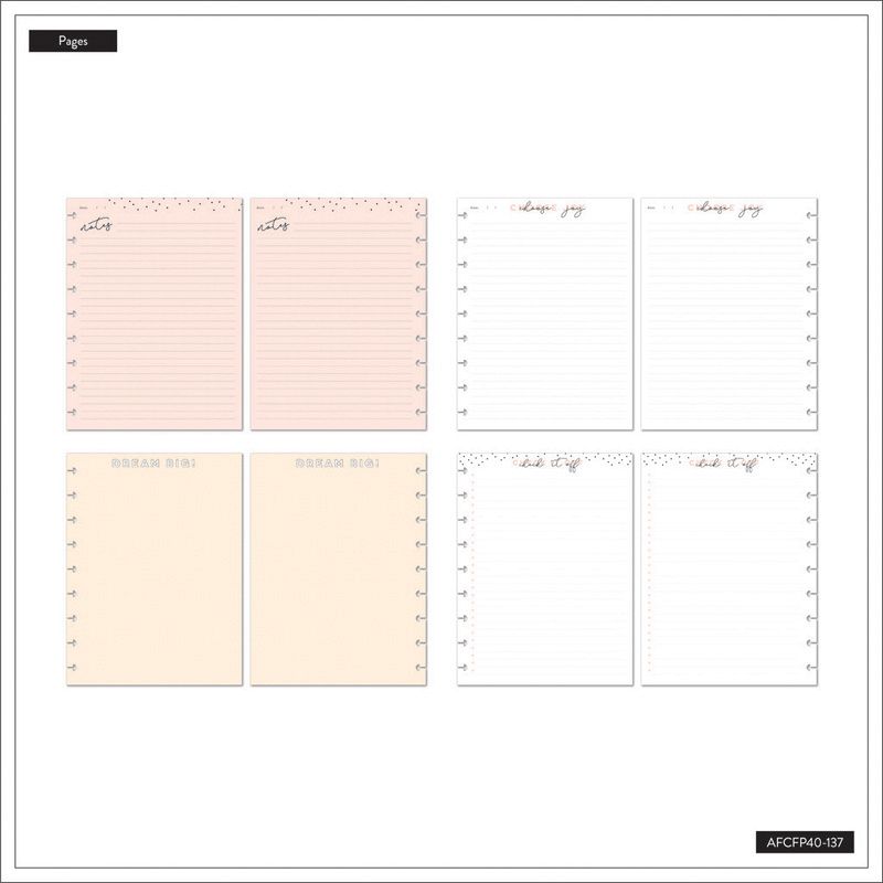 Add these Happy Planner filler paper pages to your Classic size planner and journal or notebook. Extend your planners life while you boost your productivity with the best planner accessories. These double sided notebook filler pages have dotted lined and blank and bullet list pages for versatility and designs that incorporate alternating colors and polka dot borders. Write notes or design your own habit trackers and get creative with all the uses.