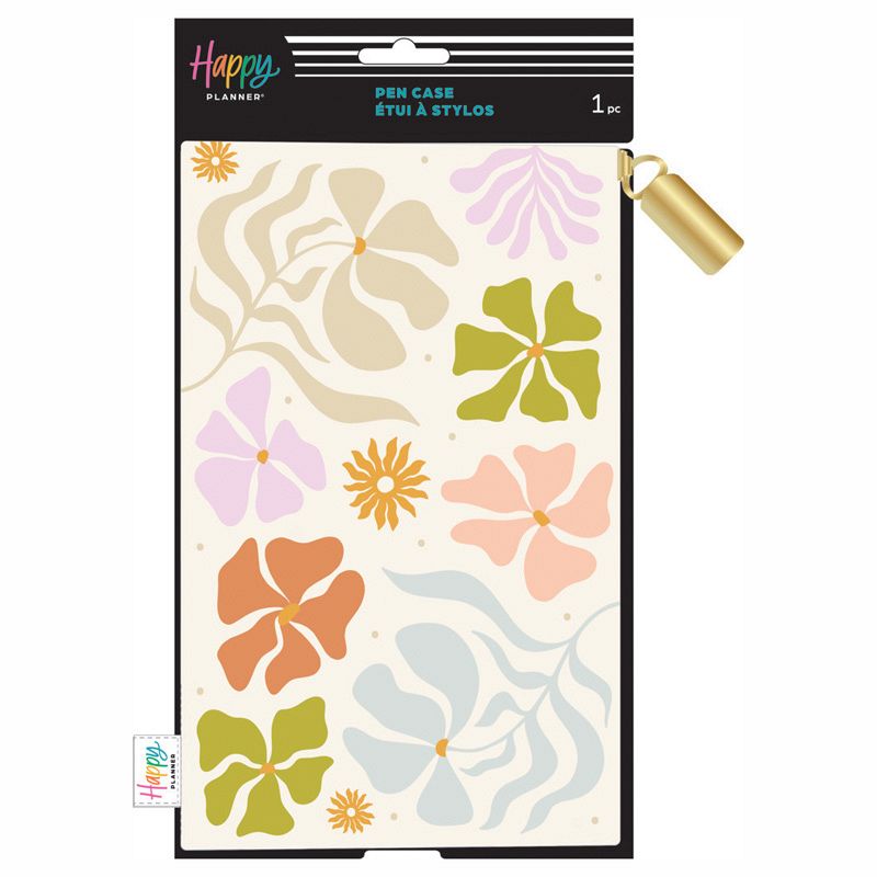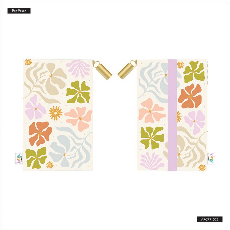 Keep all your planning at the ready. This canvas pouch features contemporary desert blooms and a muted color palette with a matching design on the back. The pen pouch has a lavender band that wraps around your Happy Planner cover. The zip closure will keep your pens and sticky notes or washi tape and all other planner accessories safe.