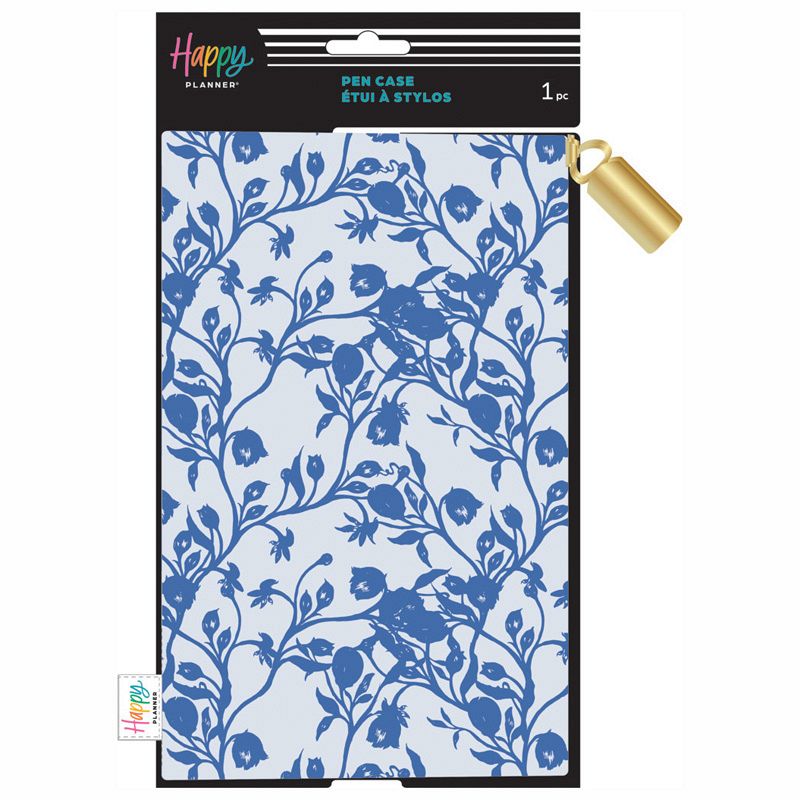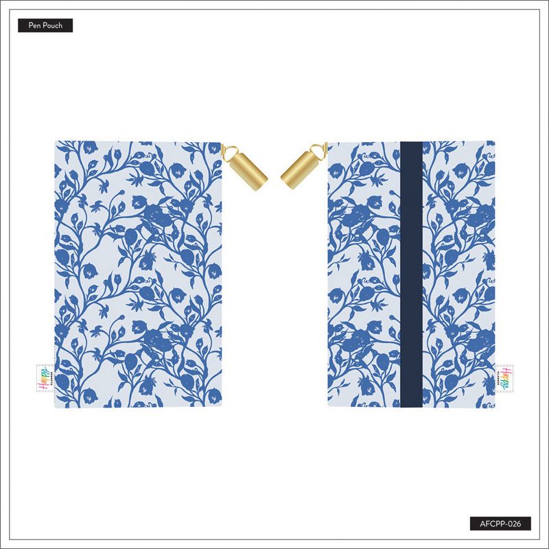 Keep your planner tools safe. This canvas pen and pencil pouch features blue and white floral designs inspired by the Japanese dying techniques called Shibori. The pen and pencil pouch has a dreamy blue band that wraps around your Happy Planner cover. The zip closure will keep your pens or sticky notes and washi tape inside.