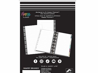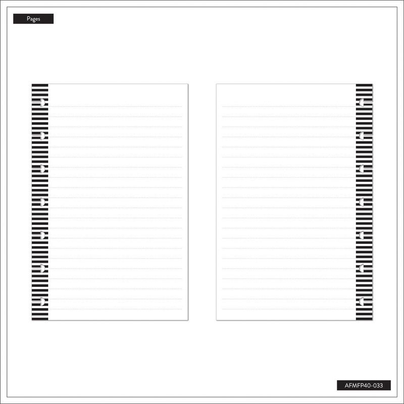 Get stuff done with the Happy Planner Mini Filler Paper. It includes dotted lined pages for all your notes and lists and goals. The design features striped black and white borders. This notebook filler paper is ideal for the simple planner or when you know you have a big day ahead that you want to get on top of.