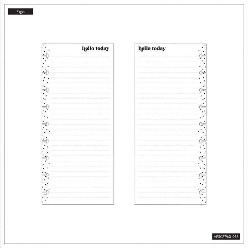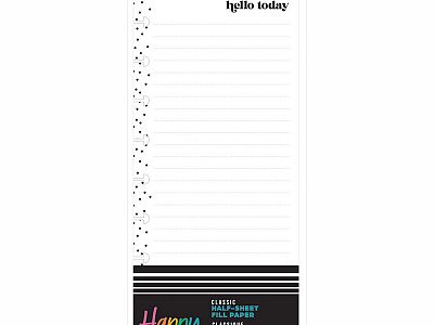Get ready to draft the ultimate Happy List with our Classic half sheet filler paper. These polka dot bordered pages are ready for your lists or plans and to dos. Write down all the things that make you happy or all the things you need to do. The half sheet filler paper is easy to pop in as an extension to your weekly spread to track your to do list and stay happy while crossing things off your list.