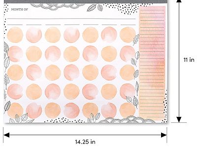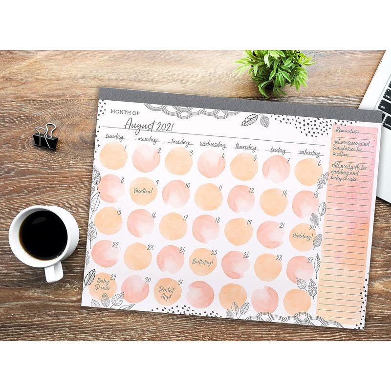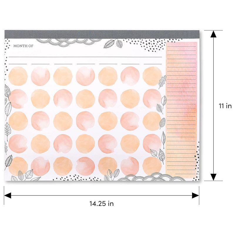 Set of 3 Soft Peach Watercolor Undated Monthly Desk Calendar Pad