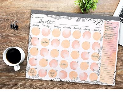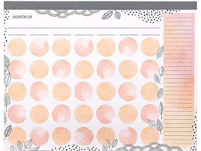 CR Gibson Soft Peach Watercolor Undated Monthly Desk Calendar Pad
