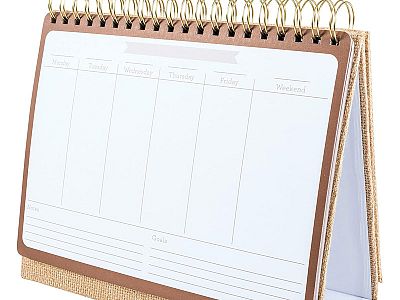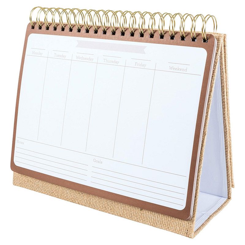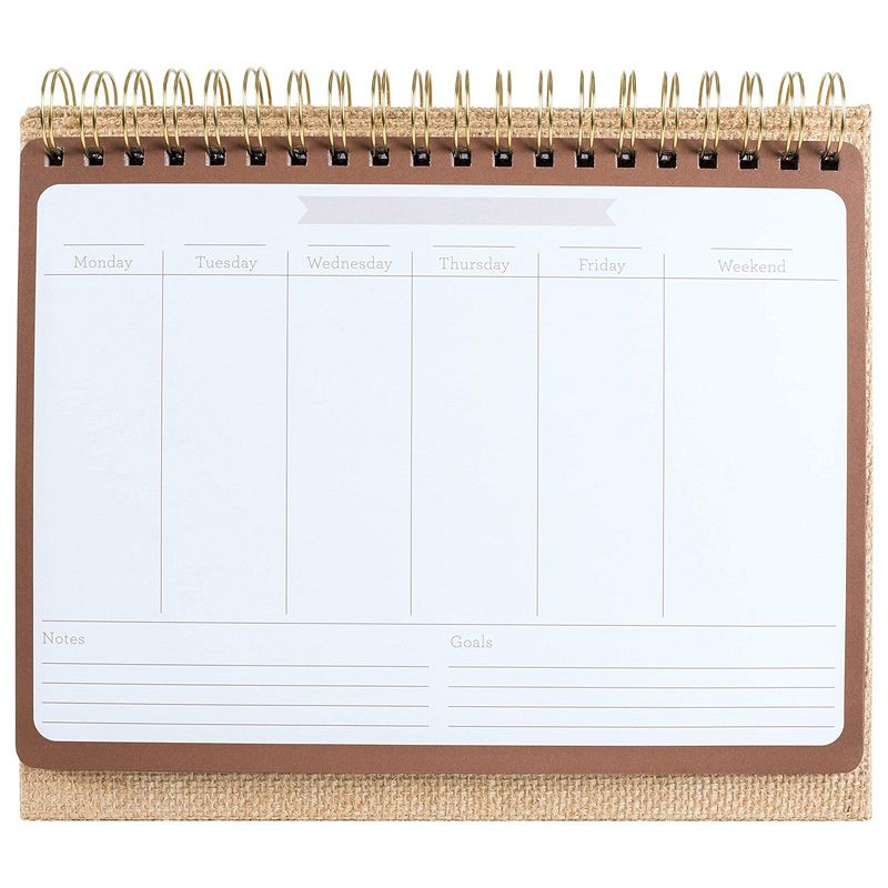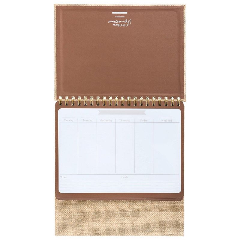 CR Gibson Woven Burlap Texture Undated Weekly Easel Standup Desk Calendar