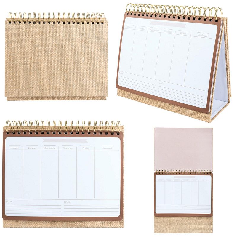 • Woven Burlap Texture Undated Weekly Easel Standup Desk Calendar