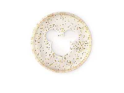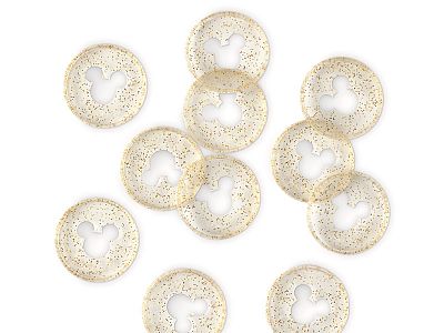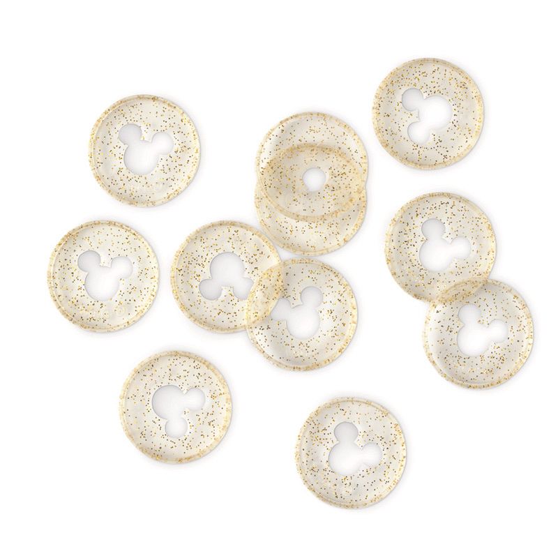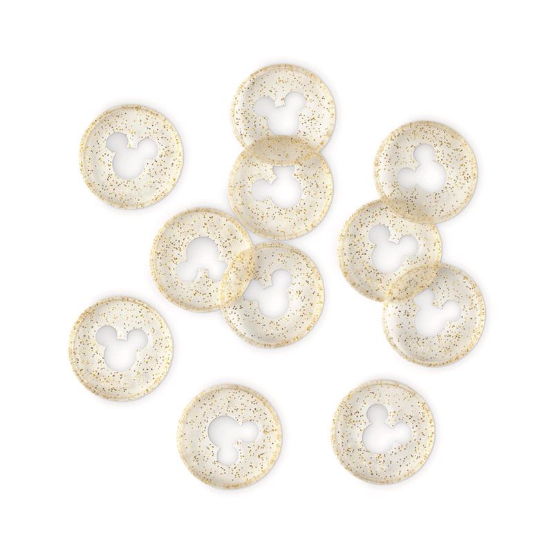 Clear plastic discs with gold glitter Mickey Mouse detail at the center.