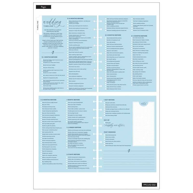 This Wedding Plans 12 month planner includes a comprehensive wedding timeline to plan your big day.