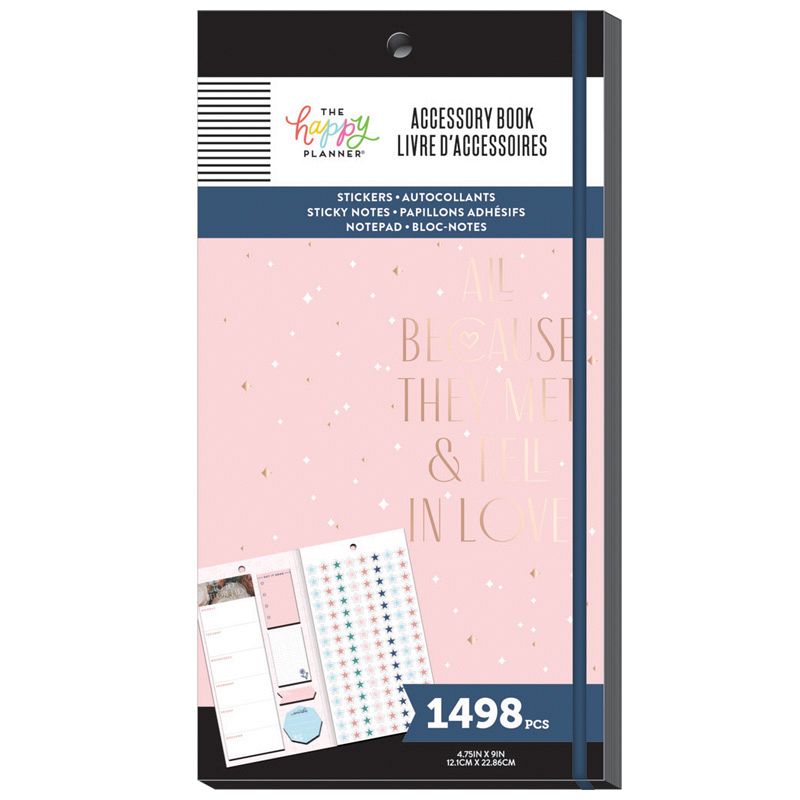The Happy Planner Wedding Accessory Book is the perfect add on for your Wedding collection notebook or planner.This accessory book has 1498 pieces including sticky notes a notepad and stickers to compliment all of those wedding needs.