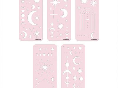 5 stencils for journaling and planning with celestial icons.